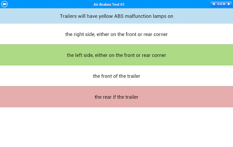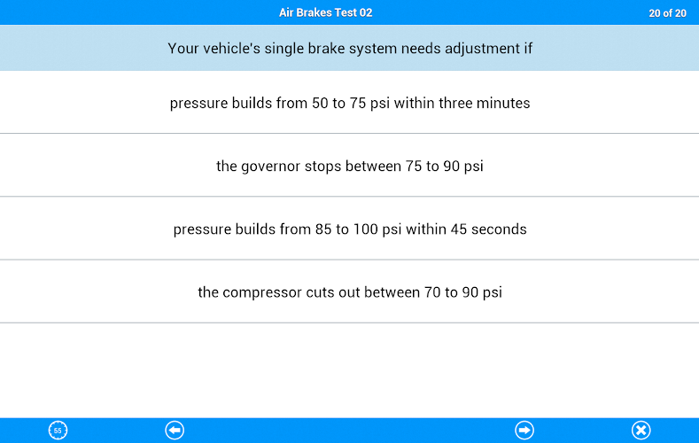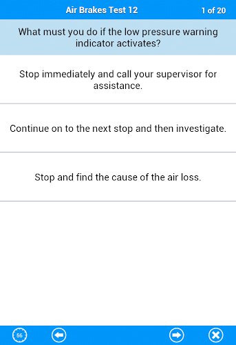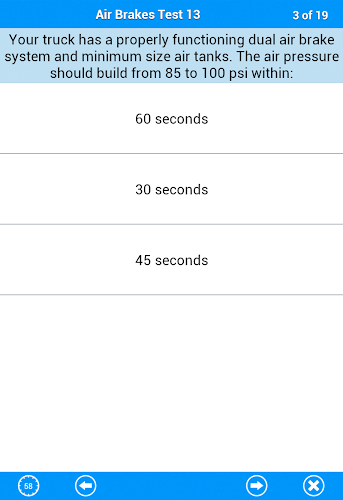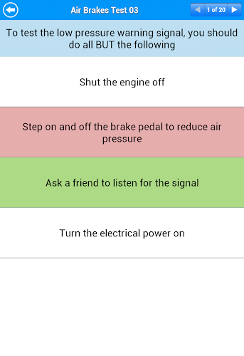 Prodejte svůj písemný test na komerční řidičský průkaz (CDL) s schválením vzduchových brzd pomocí zařízení Android.Test Air Brakes Test má více než 260 testovacích otázek s odpovědími na více výběrů.