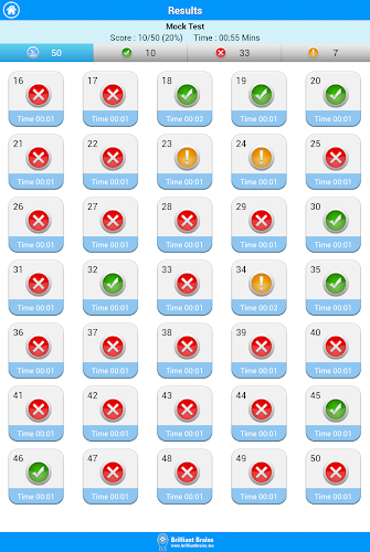 Mock test simuluje skutečný testovací formát. Otázky jsou uvedeny náhodně ze všech témat. Ukazuje vám čas, který jste si vzali, skóre, na které otázky jste odpověděli správně a kde jste se mýlili. Test.