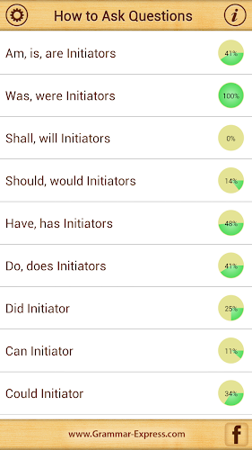 Grammar Express: Zeptání otázek je aplikace s více než 1800 otázkami, které vám posílí zpochybňování dovedností. Všechna zbývající uzamčená témata budou odemčena při nákupu plné verze z této lite verze. Bude to jednorázový nákup odemknout všechny uzamčené položky najednou. Jsou připraveni používat díly, protože každý z nich je reproduktor velmi běžně používán k tomu, aby vytvořil velké množství každodenních otázek. V této aplikaci je více než 1800 otázek, které posilují vaši otázkou dovednosti. udělal iniciator.• může iniciator.
