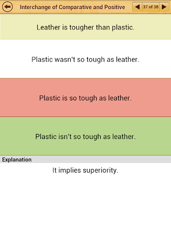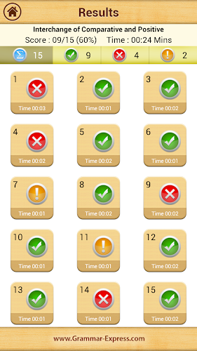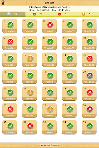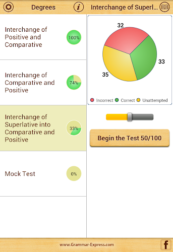 Grammar Express: Stupně je úplný kurz při zvládnutí použití různých výrazů při psaní angličtiny. Obsahuje přes 26 stránek lekcí vysvětlující, jak změnit větu z jedné gramatické formy na druhou, aniž by změnil svůj význam několika příklady. Je to cenné cvičení, které vás učí, jak představit rozmanitost v psaní angličtiny. Gramatická pravidla se můžete naučit, prostudovat příklady a otestovat jejich porozumění pomocí kvízu. Na konci kvízu je uživateli předložen testovací léta a vysvětlení pro každou testovací otázku. Grammar Express vám může pomoci zlepšit vaše porozumění titulu a využít je při psaní pro větší účinek. Vlastní nastavení časovače vám může pomoci zlepšit dobu odezvy v časových omezeních zkoušky. Výzkum naznačuje, že děti a dospělí se učí nejrychleji při hraní učebních her s zpětnou vazbou v reálném čase. Grammar Express poskytuje studentům příležitost zlepšit strategie pro gramatický úspěch.