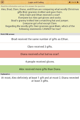 Tato aplikace obsahuje 12 plné délky praktických dokumentů o ústním zdůvodnění. V rámci každého typu otázky pokrýváme všechny odchylky, všechny úrovně obtížnosti a obecným přístupem zajišťujeme, že kurz je snadno sledovatelný pro facilitátora i studenta.Při dokončení každého testu je uživatel udělen shrnutí otázek správně, nesprávně, nesprávně a přeskočené spolu s časem přijetím každé otázky. Každou otázku lze zkontrolovat a všechny otázky mají vysvětlení odpovědi.