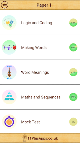 • Monitor pokroku pomáhá sledovat pokrok, téma Wise a Mock Test Wise.