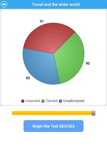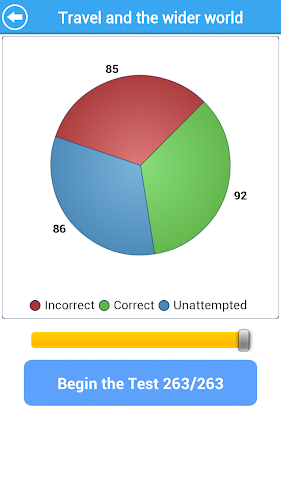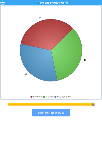 Můžete se vyzkoušet na slovníku pomocí inteligentně navrženého kvízového systému. Všechna slova jsou kategorizována do témat. Praktický modul vám umožňuje znovu odpovědět na otázky nebo otázky, které jste dosud nezabývali. Na konci každého testu můžete vidět skóre a zkontrolovat své odpovědi. Výsečový graf ukazuje váš aktuální pokrok.