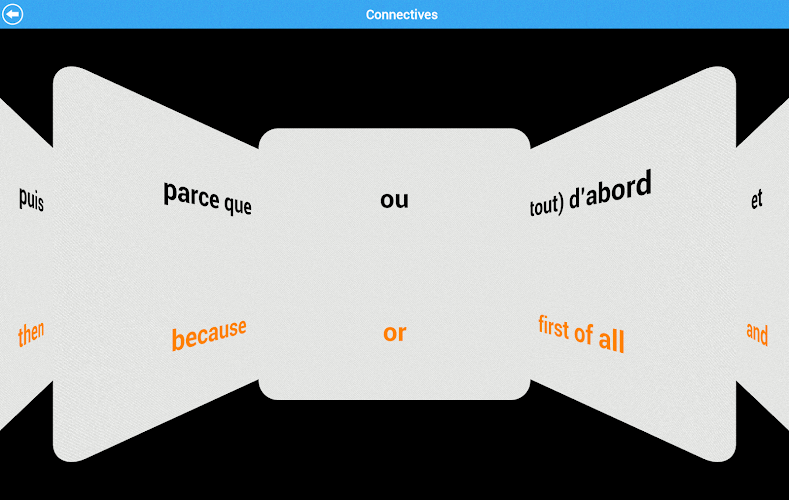 Tato inovativní aplikace má krásné flash karty s pohledem na CoverFlow, které lze vnímat buď francouzsky nebo angličtinou až do francouzštiny.