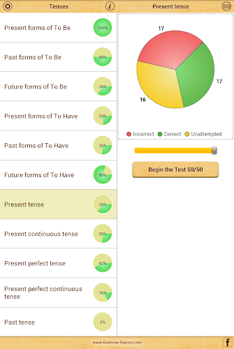 gramatická pravidla můžete studovat podle témat. všechny otázky jsou seřazeny podle tématu. také vám sdělí oblasti, kterých se každé téma týká. vyberte si vlastní nastavení časovače a počet otázek, které byste chtěli v každém testu. speciální algoritmus náhodně rozděluje otázky pokaždé, když uděláte test.