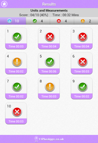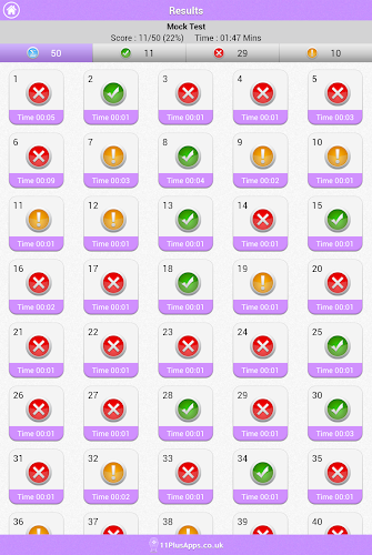 Po dokončení každého testu je uživatel správně zodpovězen, nesprávně a přeskočil spolu s časem na každou otázku. Každou otázku lze zkontrolovat a všechny otázky mají vysvětlení odpovědi.