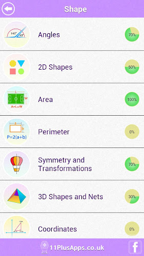 Tato aplikace zahrnuje 32 témat. Každé téma má poznámky k rychlé revizi a 10 otázek. Otázky jsou podobné těm, které byly položeny v 11+ běžných přijímacích zkouškách stanovených gramatickými školami a nezávislými soukromými školami ve Velké Británii a po celém světě. Liší se v úrovních obtížnosti od 1 do 10.
