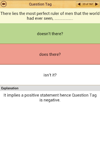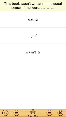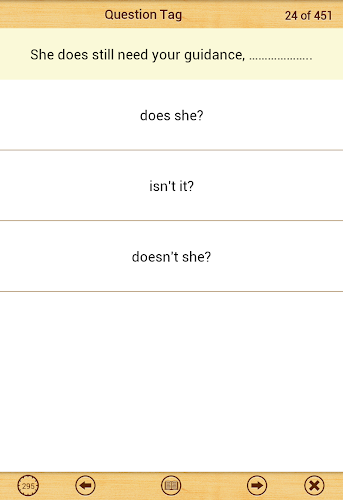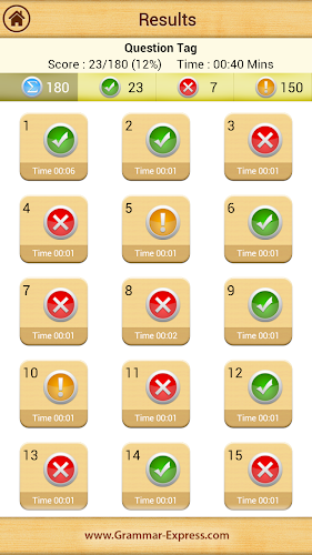 Grammar Express: Značka otázek je kompletní kurz při zvládnutí umění používání značkových otázek ve vaší každodenní konverzaci. Obsahuje více než 13 stránek lekcí vysvětlující různá pravidla pro použití značek otázek, které vyhovují smyslu a prohlášení s několika příklady. Gramatická pravidla se můžete naučit, prostudovat příklady a otestovat jejich porozumění pomocí kvízu. Na konci kvízu je uživateli předložen testovací léta a vysvětlení pro každou testovací otázku. Grammar Express vám může pomoci zlepšit vaše porozumění značce otázek a využít ji ve vaší komunikaci. Vlastní nastavení časovače vám může pomoci zlepšit dobu odezvy v časových omezeních zkoušky. Výzkum naznačuje, že děti a dospělí se učí nejrychleji při hraní učebních her s zpětnou vazbou v reálném čase. Grammar Express poskytuje studentům příležitost zlepšit strategie pro gramatický úspěch.