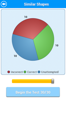 Interaktivní koláčový graf zobrazuje aktuální pokrok pro každé téma. Můžete se dotknout různých barevných řezů koláče a vybrat, zda chcete odpovědět pouze nesprávně odpověděné otázky, bez ohledu na otázky nebo správně zodpovězené otázky. Tato funkce je velmi užitečná pro dosažení 100% skóre v každém tématu.