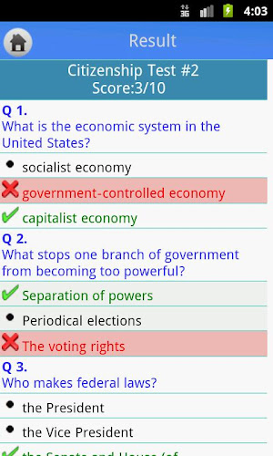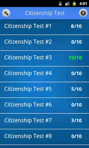 USA Občanství a imigrační služby (USCIS) provádí test všem přistěhovalcům žádajícím o občanství.Tato aplikace obsahuje všechny otázky, na které budete položeni v testu občanství. Slick uživatelské rozhraní umožňuje vybrat si z možných odpovědí.