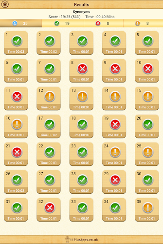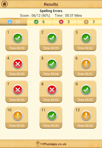 Při dokončení každého testu je uživateli udělen shrnutí otázek správně, nesprávně a přeskočil spolu s časem při každé otázce. Každou otázku lze zkontrolovat a všechny otázky mají vysvětlení odpovědi.