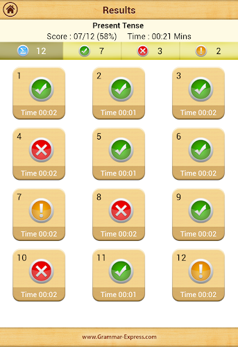 na konci každého testu je uvedeno shrnutí cvičného testu. ukazuje vám čas, skóre, na které otázky jste odpověděli správně a kde jste se mýlili.