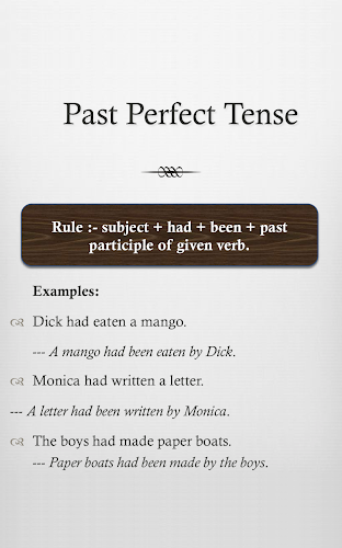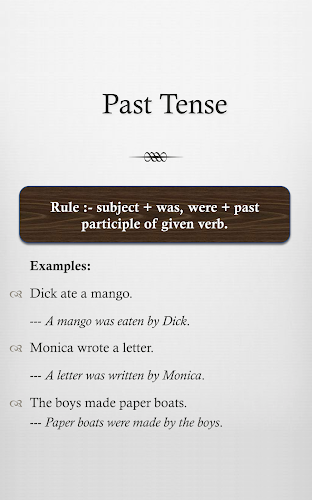 gramatický expres: aktivní a pasivní hlas je kompletní kurz zvládnutí transformace vět, proces, který vám umožní změnit větu z jedné gramatické formy do druhé, aniž byste změnili její význam. je to cenné cvičení, protože vás naučí, jak zavést rozmanitost v psaní angličtiny. obsahuje přes 46 stran lekcí s několika příklady vysvětlujícími, jak změnit aktivní hlas na pasivní a naopak. můžete se naučit gramatická pravidla, prostudovat příklady a otestovat jejich porozumění v kvízu. na konci kvízu je uživateli předložen letní test a vysvětlení pro každou testovou otázku. Gramatika express vám může pomoci zlepšit porozumění aktivnímu a pasivnímu hlasu a využívat různé výrazy při psaní angličtiny. vlastní nastavení časovače vám může pomoci zlepšit dobu odezvy v rámci časového omezení zkoušky. výzkumy naznačují, že děti a dospělí se učí nejrychleji, když hrají výukové hry s chybovou zpětnou vazbou v reálném čase. Gramatic Express poskytuje studentům příležitost zlepšit strategie pro úspěch v gramatice.