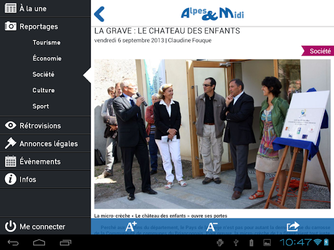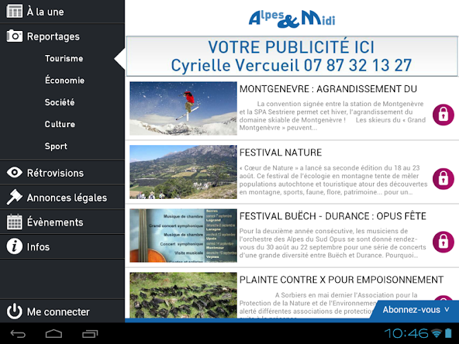 Analýza A Revize Aplikací Pro Android: Alpes & Midi, Vyvinuté Společností WebSenso. Uvedeno V Kategorii Noviny A Časopisy. Aktuální Verze Je 1.2.3, Aktualizována Na 04/03/2015 . Podle Recenzí Uživatelů Na Google Play: Alpes & Midi. Dosaženo Více Než 100 Instalací. Alpes & Midi Má V Současné Době Recenze 2, Průměrné Hodnocení 4.5 Hvězd