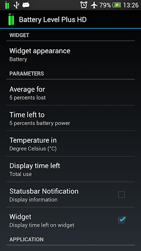 Úroveň baterie je zobrazen jeden ze 7 různých konfigurovatelných widgetů.