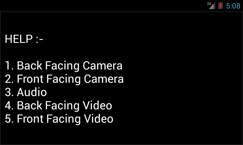 Toto je jednoduchá aplikace, která dokáže tajně provádět následující úkoly:i. Zachyťte zpět fotoaparát s fotoaparátem