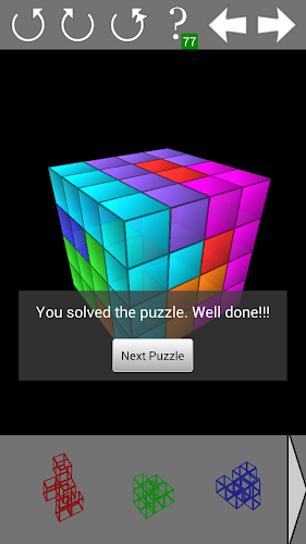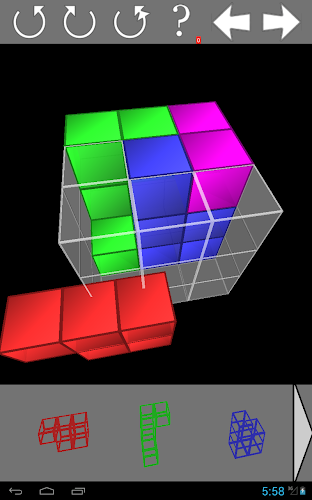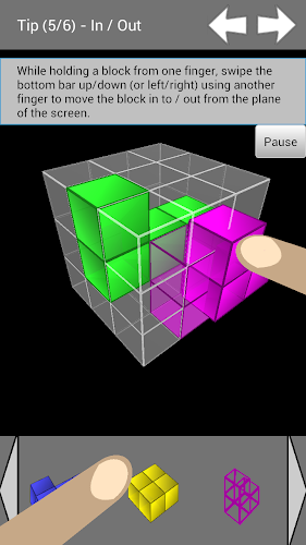 Najděte způsob, jak vyplnit 3D struktury danými bloky. Každá hádanka má jedno a pouze jedno řešení.Existuje 3000 hádanek ve 3 úrovních obtížnosti, snadné, střední a tvrdé. A s více než 2000 více úrovními v bonusovém balíčku (díky celkově 5000 bezplatných hádanek), nikdy vám nedojde hádanky. Než to hrajete, ujistěte se, že to projdete. V prvním běhu ve hře vám bude automaticky zobrazen (nebo můžete kliknout na „tutoriál“ na uvítací obrazovce.)
