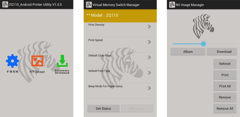 Mobilní tisk vyrobený!ZEBRA ZQ110 Utility vám umožňuje upravit nastavení tiskárny a vytisknout ukázkový obrázek přímo na tiskárnu ZQ110 ZQ110 přes Bluetooth nebo WLAN.
