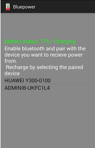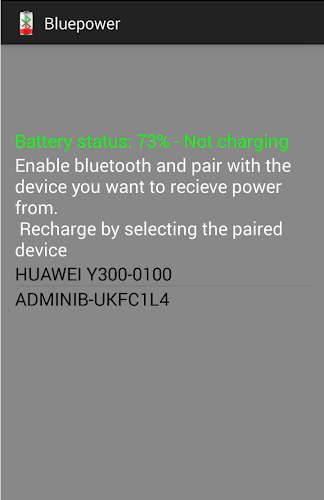 Už jste někdy byli v situaci, kdy se váš smartphone vzdá, protože baterie je téměř mrtvá a nabíječka není nikde kolem? Jste v této situaci právě teď? BluePower je tu, aby vás zachránil!BluePower používá technologii Bluetooth, aby vám umožnil dobití zařízení sdílením síly jednoho z dalších zařízení pro Android nebo požádat přítele, aby sdílel 10% své baterie telefonů. Jednoduše povolte Bluetooth a spárujte dvě zařízení. Vyberte ten s dostatečnou energií a nechte BluePower udělat zbytek.