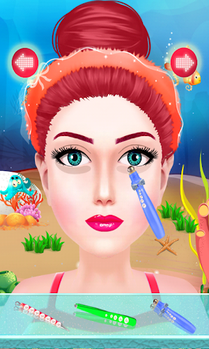 Dnes večer se objeví největší podvodní móda. Všechny princezny a mořské panny se musí pro tuto prezentaci připravit a zdobit. Potřebujeme osobu, která se musí s těmito lidmi vypořádat, ale nevíme, koho si vybrat. Mysleli jsme si, že jste tím pravým člověkem, takže v této hře se musíte postarat o vzhled sirény. Přejeme vám velký úspěch.1) Nejprve musíte umýt vlasy a tělo a aplikujeme několik vrstev opalovacího krému. Tvář používající krémy.