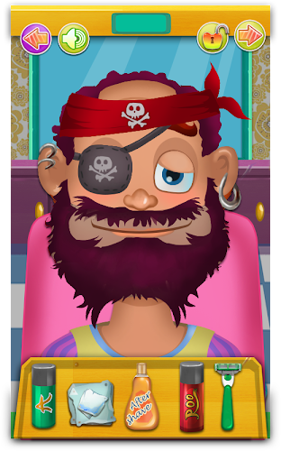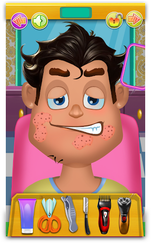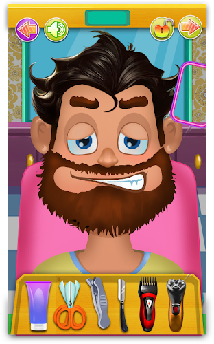 Men have a very big problem when it comes to shaving because it irritates very hard and looks very ugly. When you do this you have to be very careful and give the cream after they finished shaving to prevent this. Some people can not stand this pain that it causes alone and so were thought to come to a beauty salon where the employees can be served there and have part of a special shaving. In this game you must help employees to apply a shaving customers the book, so you have to follow some instructions and apply the most attention.1) First you have to take a scissors and cut his beard because it is very large.