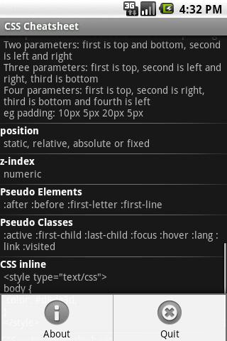 Analýza A Revize Aplikací Pro Android: CSS cheatsheet, Vyvinuté Společností steffmeister. Uvedeno V Kategorii Nástroje. Aktuální Verze Je 1.0, Aktualizována Na 01/07/2010 . Podle Recenzí Uživatelů Na Google Play: CSS cheatsheet. Dosaženo Více Než 1,000 Instalací. CSS cheatsheet Má V Současné Době Recenze 20, Průměrné Hodnocení 3.3 Hvězd