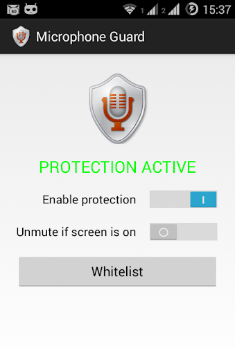 Mikrofonový strážce ztlumí vnitřní mikrofon a ujistěte se, že zůstane tlumený. Proč byste to měli chtít? Pro vaše soukromí! Spousta aplikací se nyní snaží zaznamenat nebo zvuky na pozadí bez předchozího upozornění. Mikrofon vás chrání před odposlechem těchto zlodějů na ochranu soukromí. Bude tiše fungovat na pozadí a udržuje váš mikrofon ztlumený. Mikrofonový strážce nebude zasahovat do telefonních hovorů. budou detekovány a mikrofon bude povolen automaticky. Můžete si také vybrat, zda chcete, aby mikrofon ztlumil při aktivně používání telefonu. Můžete si také vybrat aplikace, které budou moci používat mikrofon a Mikrofon Guard je automaticky odblokuje. možnost začít s bootem.Zastavte ty zvědavé uši, aby vás slyšely! Tato aplikace vás bude chránit před dohledem, spywarem, malwarem, viry a aplikacemi backdoor. Příchozí nebo odchozí hovory