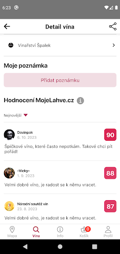 Mapa vinařů s navigací, zapisujte si poznámky, vybírejte vína, snadno nakupujte.