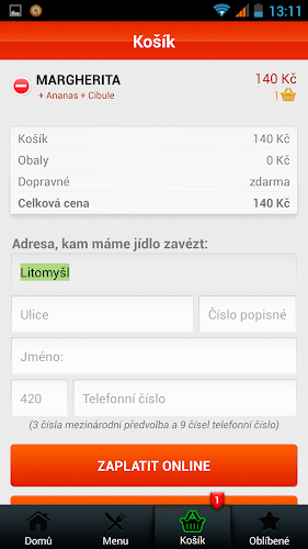 order a pizza from your smart telefonu..jednoduše and quickly.in our application pizzeria kart arena litomyšl can always wrecker current menu and information about our events.