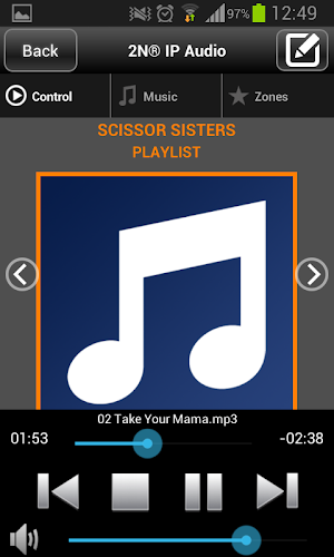 Tato aplikace vám umožňuje rychle a jednoduše ovládat váš zvukový systém IP 2N® NetSpeaker (http://www.2n.cz/en/products/ip-public-address-systems/); Hudba v jednotlivých zónách a nastavit objem vašeho systému. Umožňuje také změnit a spravovat aktuální seznamy skladeb, internetové rádiové streamy nebo přidat nové. To vše můžete nastavit z vašeho mobilního zařízení, aniž byste museli používat počítač nebo notebook. nebo malé/střední společnosti. Stručně řečeno, všichni uživatelé, kteří chtějí rychle změnit svůj zvukový obsah a jednoduše považují tuto aplikaci za velmi užitečnou.V Současné Době Nabízíme Verzi 1.0.12. Toto Je Naše Nejnovější, Nejvíce Optimalizovaná Verze. Je Vhodný Pro Mnoho Různých Zařízení. Zdarma Ke Stažení Přímo Apk Z Obchodu Google Play Nebo Jiných Verzí, Které Hostujeme. Kromě Toho Si Můžete Stáhnout Bez Registrace A Bez Nutnosti Přihlášení.