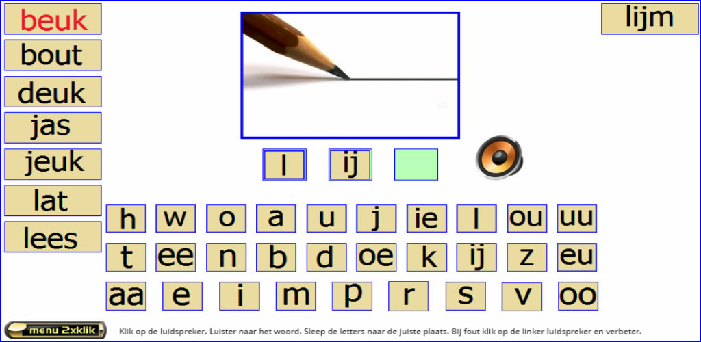 Tato řada cvičení se řídí bezpečným učením metody čtení ke čtení od Zwijsen Publishing House (běžně používaná metoda čtení v Belgii a Nizozemsku). Cvičení sledují verzi 2. měsíce. V tomto jádru 5 se vaše dítě naučí dopisy „EU - J - IE - L - OU - UU“ a slova „Reus - Jacket - Riem - Bijl - Wood - Fire“. Tato cvičení jsem provedl na základě mých 25 let zkušeností jako učitele 1. třídy. Většina cvičení je podporována vizuálně i auditivně. Cvičení, která jsou označena „raketovým přístupem“, obsahují slova pro děti, které již mohou číst nová slova se známými písmeny. Spousta sluchové a vizuální podpory. Sluchátka způsobují, že zvuk ještě zlepšuje. Funguje nejlépe na tabletech. Není to tak vhodné pro chytré telefony. Billiau Danny.Co Je Nového