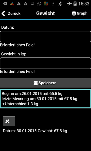 Ať už těhotná, zkontrolovat rostoucí břicho nebo jako doprovod oprávnění nebo pro kontrolu hmotnosti. Tato malá aplikace vám pomůže udržet kontrolu! Zdokumentovaná hmotnost, hodnota tuku, obvod břicha, obvod PO, obvod horních ramen...