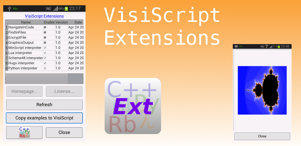 Rozšíření VisiScript a SciteQt Extensions je rozšiřující modul pro aplikace textového editoru VisiScript a SciteQt.Tato aplikace přináší některé další funkce