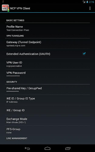 NCP Secure VPN Client pro Android je univerzální klient IPSEC VPN, který je kompatibilní pro všechny hlavní brány IPSec VPN (např. NCP, CISCO, Juniper, sítě, Screenos, Microsoft Server 2008 R2, Check Point, Sonicwall, Lancom Systems, Teldat, Astaro, Adtran).
