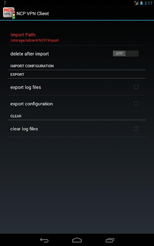 Dále se nedoporučuje mít obě klientské verze, NCP Secure VPN Client Premium pro Android a NCP Client Pro Android (nebo zkušební verze), nainstalované paralelně.