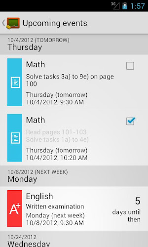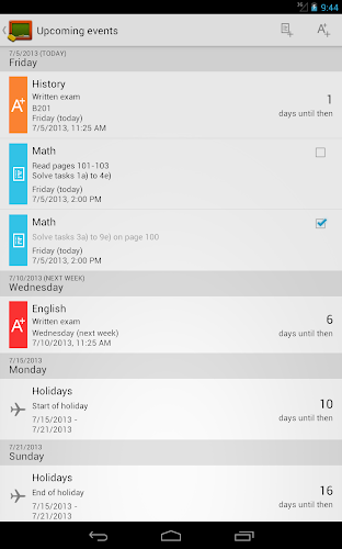 ★ Widgety (velikosti: 2x1, 3x1, 2x2, 4x2, 3x3, 4x4; ukazuje všechny zbývající kurzy na den) a synchronizace Cross-Device