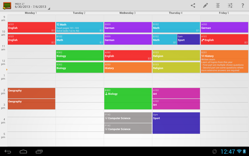 ★ Podporuje časové rozvrhy pomocí A/B (a dokonce C, d) týdnů; Stačí nastavit frekvenci lekce (například na „každé 2 týdny“) a aplikace se automaticky přepíná mezi A/B týdny
