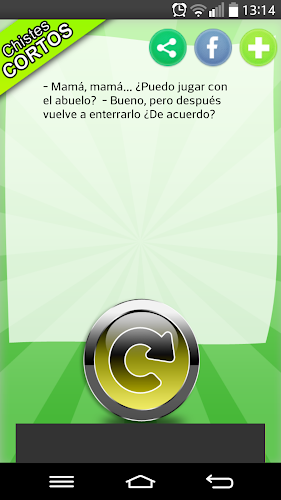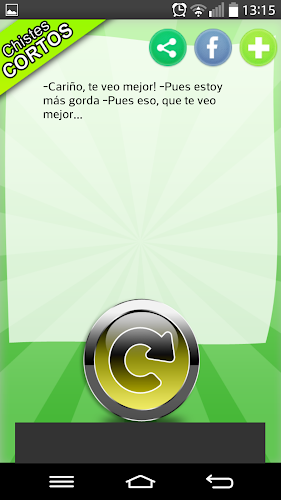 Stovky krátkých vtipů na různé předměty, které se vymanijí smích, humor pro všechny públicos.sorprende své přátele! budou přidány s novými aktualizacemi, zůstaňte naladěni! Nyní můžete své vtipy sdílet od WhatsApp, Telegram, Line nebo Odeslat od Viberpoštou svým přátelům. Sdílíte vtipy se svými přáteli prostřednictvím e -mailu, SMS, Bluetooth, Facebooku, Twitteru, WhatsApp a dalších.