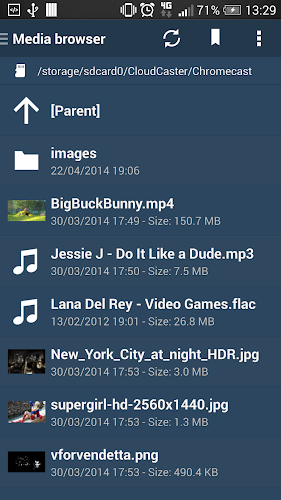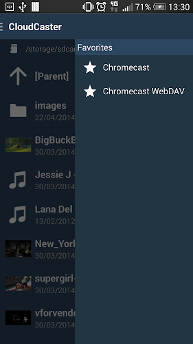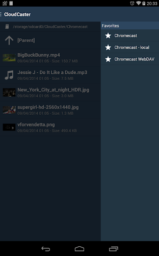 * Některé servery WebDAV nemusí podporovat přímé streamování do chromecast. Servery WebDAV s certifikáty SSL s vlastním podpisem nebudou určitě fungovat, protože Chromecast nepovoluje připojení. Poté však můžete streamovat prostřednictvím zařízení Android.