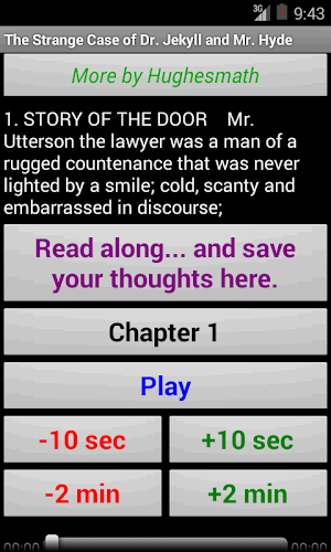 Analýza A Revize Aplikací Pro Android: Dr Jekyll and Hyde Listen Read, Vyvinuté Společností HughesMath. Uvedeno V Kategorii Hudba A Zvuk. Aktuální Verze Je 1.0, Aktualizována Na 06/03/2014 . Podle Recenzí Uživatelů Na Google Play: Dr Jekyll and Hyde Listen Read. Dosaženo Více Než 500 Instalací. Dr Jekyll and Hyde Listen Read Má V Současné Době Recenze 1, Průměrné Hodnocení 5.0 Hvězd