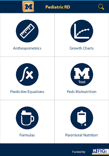 Referenční aplikace pro výživu pro pediatrické dietotické, pediatry a další zájemci, kteří zahrnují růstové grafy, prediktivní rovnice, pokyny pro diagnostiku podvýživy a informace o vzorcích.