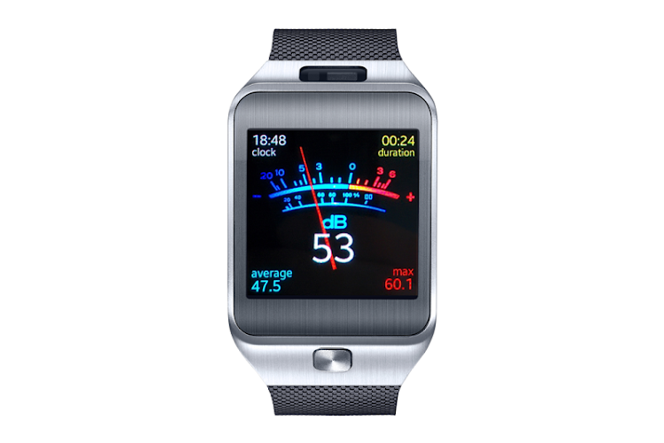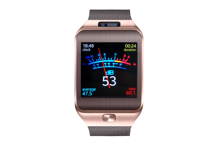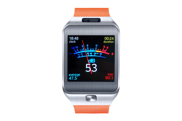 The Audiometer uses the microphone of your phone / tablet to measure the sound level, and display the result on your Samsung Gear watch.Besides the actual sound level, the maximal and the average sound levels are displayed at any time.