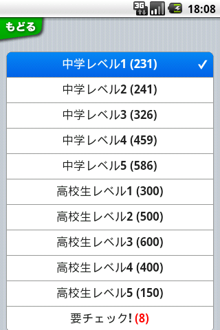 設定画面で「要チェック」ボタンを選択すれば、あなたが答えられなかった苦手な英語からのみ問題が出題されます。