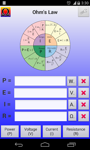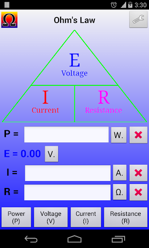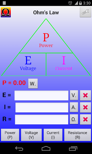 Kalkulačka zákona Ohm a #39; pro elektroniku/elektrické nástroje.