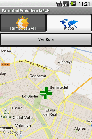 Hledejte lékárny otevřené 24 hodin denně ve Valencii, tato aplikace má zlepšení, že vyhledává ten nejblíže k vaší pozici GPS a jakmile jsme získali tuto pozici, můžeme vidět cestu do lékárny.