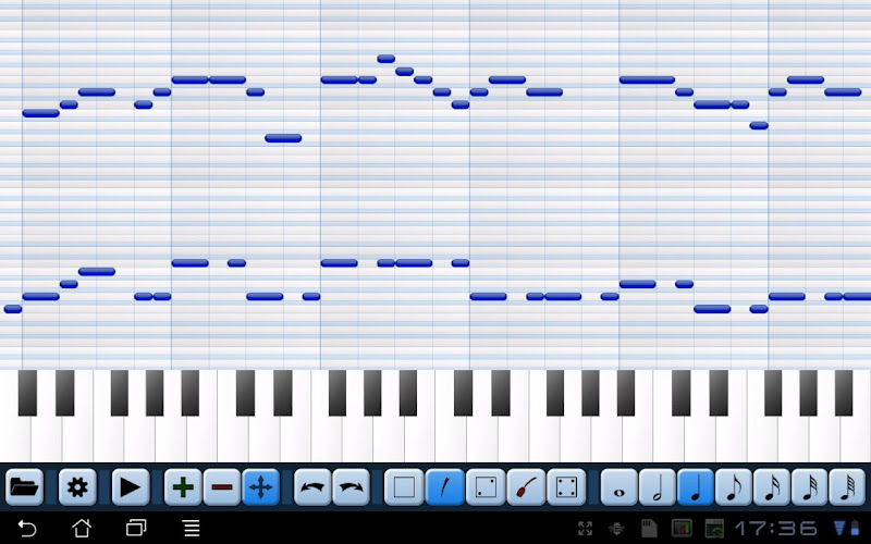 - Polyfonní klavír vstup (v multitouch zařízení) s 8 oktáv, rolovací v malých zařízeních