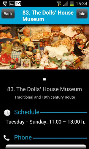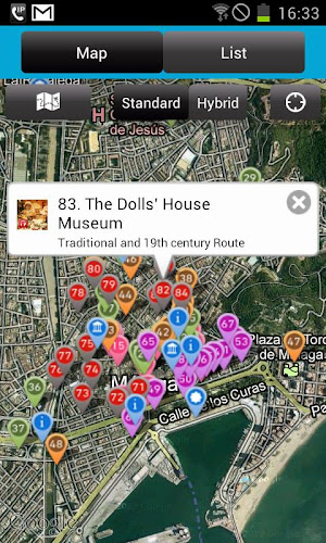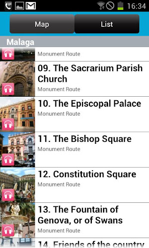 s informacemi z hlavních památek města Malaga, více než 95 zájmových bodů (84 z nich se zvukem).obsahuje fotografie, informace o rozvrhu, telefon a webové stránky předních muzeí v Malaze.