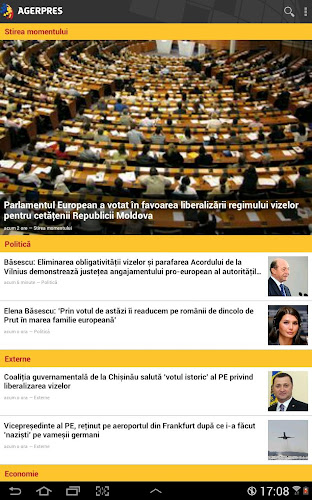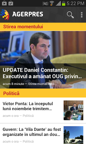 Aplicatia Agerpres a fost dezvoltata cu scopul de a-ti oferi posibilitatea sa fii la curent cu stirile din cele mai importante domenii la o atingere distanta.Acum poti afla detaliile celor mai importante subiecte din diverse categorii.