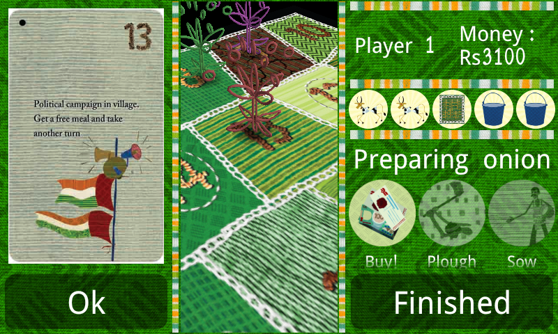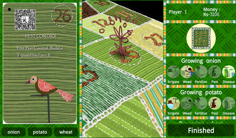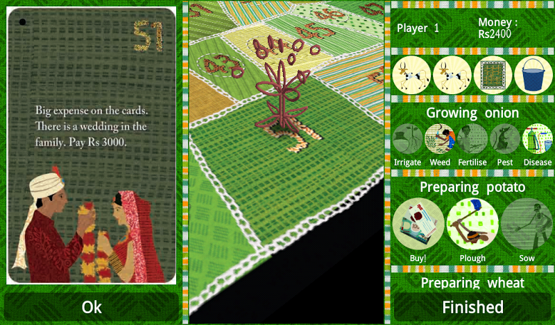 hra pro prozkoumání zemědělských praktik a problémů, kterým čelí zemědělci v Indii.