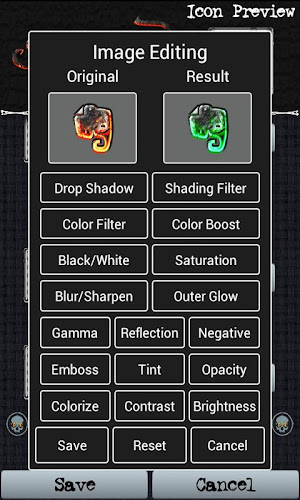 chopte se kreativního procesu a nechte svůj telefon/tablet vypadat tak, jak chcete, abyste si vytvořili své vlastní ikony pomocí aplikace pro tvorbu spálených ikon. můžete vytvořit ikonu se 3 různými vrstvami. vyberte tvář ikony, pozadí a ohraničení. pro každou vrstvu si můžete vybrat ze 2 stylů s více než 400 různými ikonami. každou vrstvu lze škálovat a transformovat a také upravovat pomocí našeho editoru obrázků. editor obrázků má 17 funkcí, které vám umožní upravit barvu a styl každé vrstvy. to znamená, že existují nekonečné možnosti, co můžete dělat. tato aplikace funguje s wizard cut, s jakoukoli aplikací, která používá balíčky ikon adw, se spouštěčem nova nebo spouštěním kruhu. při použití s wizard cut můžete umístit ikony o velikosti 2 * 2 v plném rozlišení a aktiva bude možné použít s jakýmkoli launcherem. tato aplikace obsahuje aplikace na SD kartu.návod k použití:
